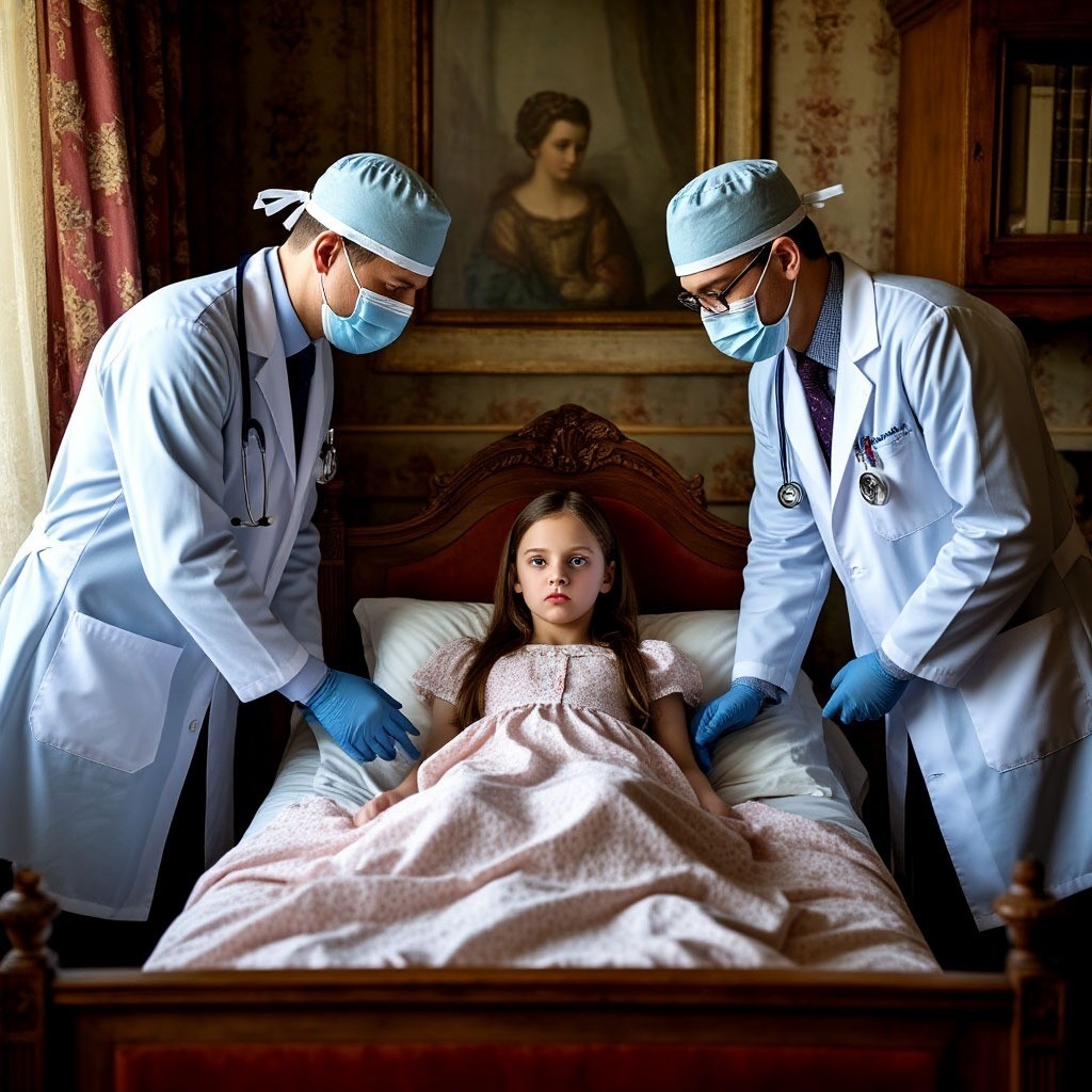 Они прошли через длинный коридор и вошли в одну из дверей. В комнате, куда они попали, было неожиданно светло, чисто и даже уютно. У стены стояла аккуратная старинная кроватка, в ней беспокойным сном спала вчерашняя знакомая Виктора – девочка Вера. Он с огорчением увидел, что выглядела она гораздо хуже, чем вчера, восковые щеки покрывал нездоровый румянец. Игорь быстро подошел к девочке, прислушался к дыханию.