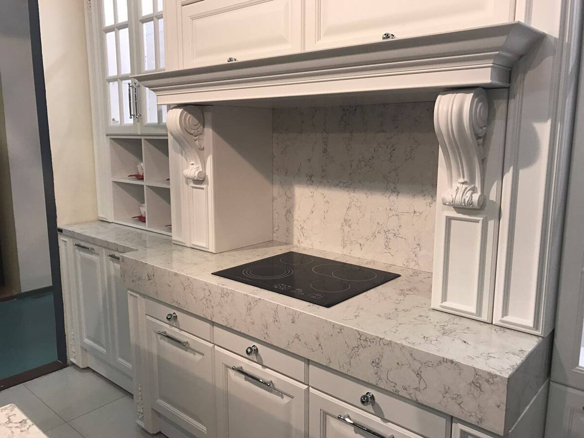 ❄️❄️❄️ Столешница и остров выполнены из кварцевого камня Silestone - White Arabesque. Два тона — белый и серый, дополненные темно-серой прожилкой, придают этому цвету смелый мраморный эффект. #Сайлстоун #Сайлстоун_White_Arabesque