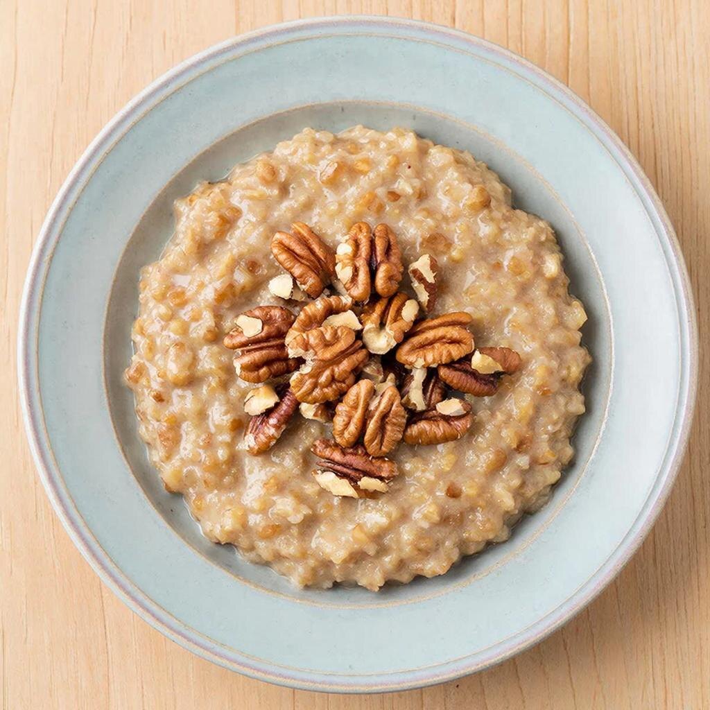 Крупу перебрать, промыть, засыпать в кастрюлю, залить водой и оставить на ночь. Утром посолить, довести до кипения и варить на слабом огне, периодически помешивая, 20 минут с открытой крышкой. Орехи обжарить и за несколько минут до окончания варки добавить в кашу. если вы хотите, можете их порезать на удобные для вас части. Чтобы приготовить такую кашу за несколько минут, крупу можно не замачивать на ночь но в этом случае время варки увеличится до одного часа. Ингредиенты: 250 гр. овсяной крупы, 3 стакана воды, 100 г. очищенных грецких орехов, соль.