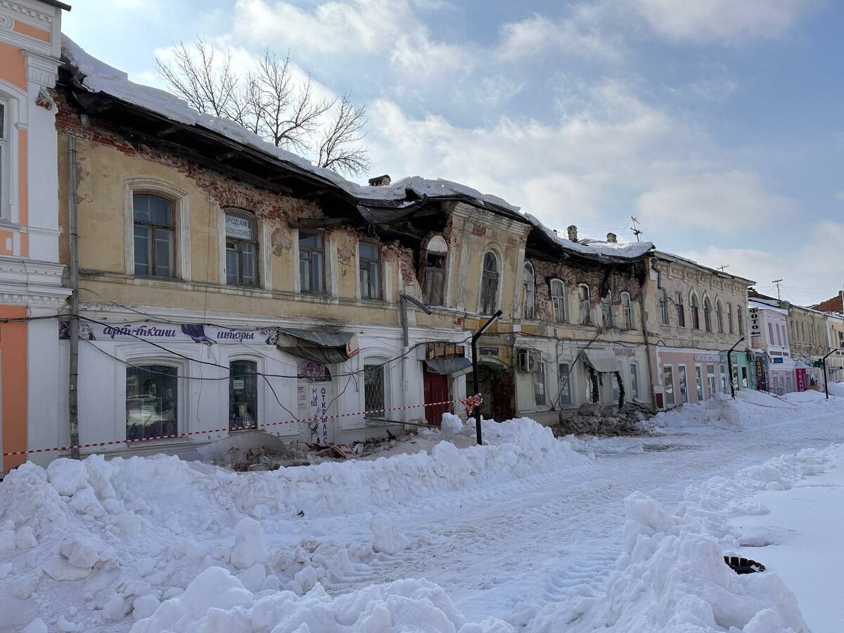 кирпича и штукатурки. По данным МЧС, причиной стала повышенная снеговая нагрузка. Информация о пострадавших не поступала, угрозы соседним зданиям нет. На месте работают 22 специалиста и 18 единиц техники, МЧС, ДПС, МВД. Фото: Алена Дуранчева, ПроТамбов