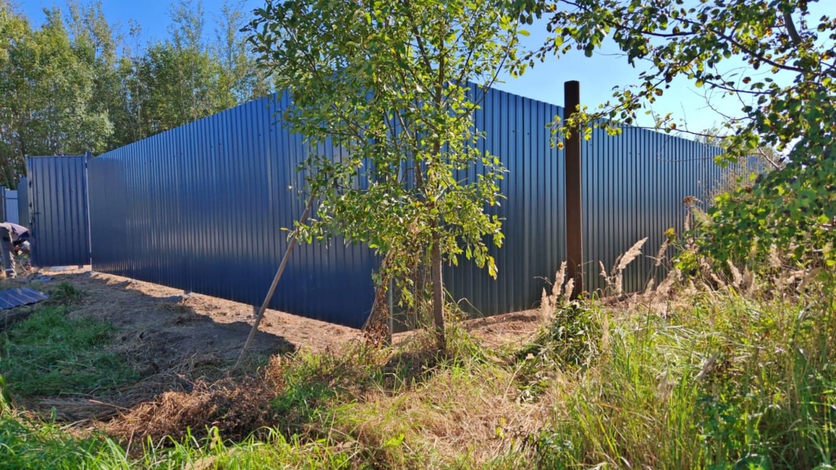 Π§ΡΠΎ ΡΠ΄Π΅Π»Π°Π½ΠΎ: β ΠΠ°Π±ΠΎΡ ΠΈΠ· ΠΏΡΠΎΡΠ½Π°ΡΡΠΈΠ»Π° Π‘-8 ΠΎΠ΄Π½ΠΎΡΡΠΎΡΠΎΠ½Π½Π΅Π³ΠΎ ΠΎΠΊΡΠ°ΡΠ°, ΡΠΎΠ»ΡΠΈΠ½Π° 0,4 ΠΌΠΌ, Π²ΡΡΠΎΡΠ° 2 ΠΌ, ΡΠ²Π΅Ρ Π³ΡΠ°ΡΠΈΡ (RAL 7024), Π΄Π»ΠΈΠ½Π° β 110 ΠΏ.ΠΌ. β Π Π°ΡΠΏΠ°ΡΠ½ΡΠ΅ Π²ΠΎΡΠΎΡΠ° 3,9Γ2 ΠΌ Ρ Π·Π°ΠΏΠΎΡΠΎΠΌ Β«Π³ΡΡΡΒ», ΡΡΠΎΠΏΠΎΡΠ°ΠΌΠΈ Π² Π·Π΅ΠΌΠ»Ρ, ΠΏΡΠΎΡΡΠΈΠ½Π°ΠΌΠΈ ΠΏΠΎΠ΄ Π·Π°ΠΌΠΎΠΊ ΠΈΠ·Π½ΡΡΡΠΈ, ΠΎΡΠΊΡΡΠ²Π°Π½ΠΈΠ΅ Π²ΠΎΠ²Π½ΡΡΡΡ. β ΠΡΠΊΠ°ΡΠ½ΡΠ΅ Π²ΠΎΡΠΎΡΠ° 4Γ2 ΠΌ Ρ ΠΌΠ΅Ρ