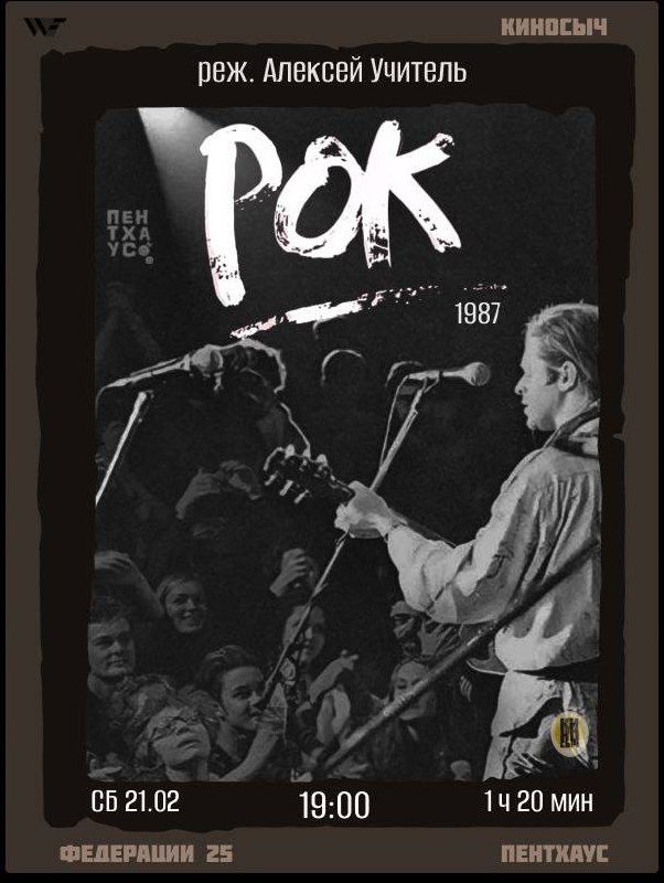 ) Режиссёр: Алексей Учитель Жанр: документальный, музыка Страна: СССР Продолжительность: 1 ч 20 мин 🗓️ 21 февраля 19:00 📍Федерации 25, чрез двор в ПЕНТХАУС Описание: Поколение кочегаров, киномехаников, дворников и сторожей ищут себя на просторах советской земли. Днём рабочие, а вечером кумиры молодежи, собирающие толпы лиц, увлекающихся запрещенной музыкой. В своих произведениях, вектор социализма они делят на ноль, для того чтобы в подполье создать свой авангард времен перестройки. Полудокументальный фильм Алексея Учителя, где основные представители Ленинградского рок-клуба: Аквариум, ДДТ, КИНО, АукцЫон представлены в своей естественной среде: в быту, во время репетиций и на сцене. Ко дню памяти поэта Александра Башлачёва. Ведущий: Андрей Патрин 🏷️ свободные взносы #21февраля26@culturnik