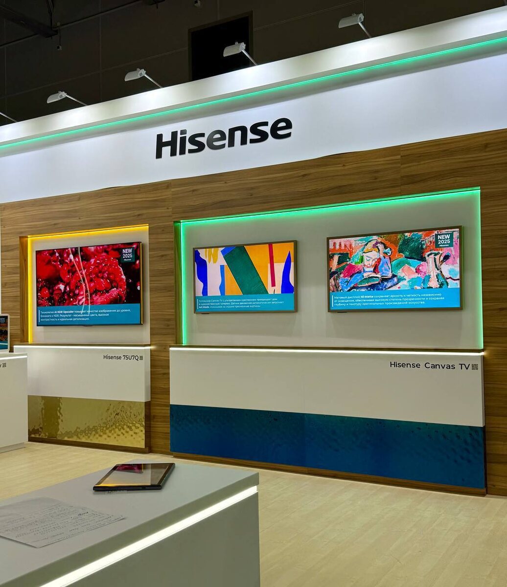 Мы стали участником международной выставки мебели, интерьерных решений и искусства ARTDOM, которая проходит в московском «Крокус Экспо» с 19 по 21 февраля. ARTDOM — это пространство, где дизайн говорит языком эмоций, а технологии становятся частью интерьера и образа жизни. В центре художественного сезона — тема Sense Sensory: исследование дизайна через пять чувств. И именно здесь Hisense показывает, как изображение и звук могут выходить за рамки экрана. Центром стенда стал флагманский телевизор с огромным 116-дюймовым экраном и технологией RGB MiniLED — Hisense 116UXQ Особое внимание — новым телевизорам Canvas TV и Deco TV. Они органично встраиваются в интерьер, работают с пространством как арт-объекты и наполняют дом эстетикой, не теряя при этом технологической мощи. Также от Hisense можно увидеть: 🖼 Hisense HT Saturn — мощная аудиосистема 4.1.2 с общей мощностью 720 Вт. 🖼 Hisense 100U7Q Pro и Hisense 75U7Q — MiniLED телевизоры с насыщенным цветом, высокой контрастностью и плавн