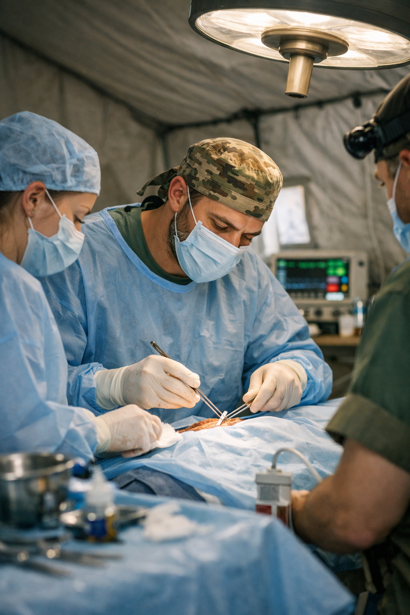 Он осторожно начал ревизию раны. К счастью, проникающего повреждения не оказалось. Пострадали кожа, подкожная клетчатка и мышцы передней брюшной стенки – наружная и внутренняя косые, – но брюшная полость осталась цела. Судя по направлению разрыва, взрыв пришёлся сбоку, и большую часть осколков остановил бронежилет. Это и спасло бойцу жизнь.