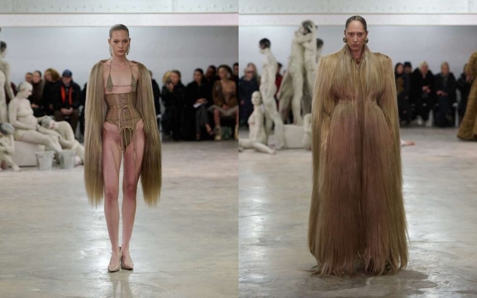 Мода с характером – волосы как тренд Волосы, вплетённые в одежду, больше не выглядят как разовый эффект ради громкого показа. Это заметный мотив сезона, который уверенно закрепился в коллекциях. Дизайнеры исследуют материал смело и системно: от арт-экспериментов до предметов гардероба, готовых к реальной жизни. От подиума к гардеробу На Парижской неделе высокой моды Charlie Le Mindu показал коллекцию, где волосы становятся частью конструкции платьев, пальто и аксессуаров. Они вплетены в ткань как самостоятельная фактура, работают на силуэт и создают особую пластику. Это высказывание о материале, о теле, о ремесле — с авторским темпераментом и вниманием к детали. В поле поп-культуры тему подхватила Kim Kardashian с образом «мохнатых» трусов. Обсуждение вышло за пределы подиума и закрепило мотив в массовом поле. Идея стала видимой, обсуждаемой, цитируемой. Материал вызывает живую реакцию и цепляет сразу на нескольких уровнях: Тактильность и ощущение природной фактуры в эпоху гладки