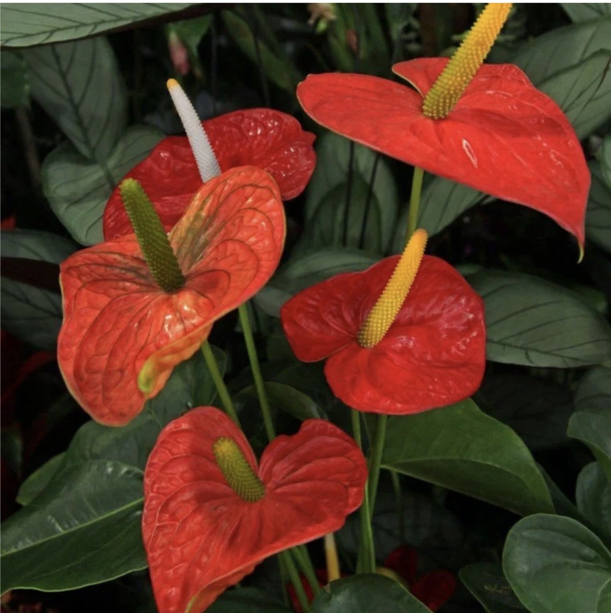 Посмотрите на антуриумы, дельфиниумы, ирисы.