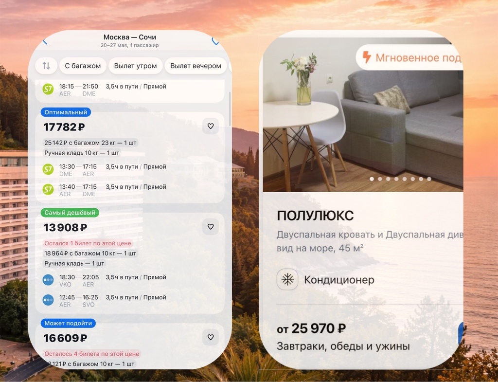 Конечно, Абхазия! Тут вы отгадали! А отель - Солнечный ☀️ чуть-чуть не докрутили. Итак, если вам вруг захотелось окунуться в эстетику советской ривьеры, выпить кофе на огромном балконе с видом на море и прокатиться на лифте внутри скалы – вам в Солнечный в Абхазии. Нам тоже, но об этом в конце)) Куда? Абхазия Пансионат «Солнечный» Тот самый формат отдыха, который многие помнят из детства и который сейчас снова как будто возвращается – но уже осознанно. Чем интересно? Дом отдыха «Солнечный» – это бывший пансионат, в котором отдыхала вся верхушка власти, артисты театра и кино, а теперь можем и мы с вами. В 2024 году пансионат прошёл реставрацию. То есть атмосфера сохранена, но внутри стало аккуратнее, комфортнее и свежее. Все номера с видом на море и своим балконом! Если выберете вариант люкс - то отдыхать будете в просторном 60-метровом люксе, а заплатите не сильно дороже – мы так, к слову, и сделали. Отдельная деталь – рядом находится дача Сталина в Абхазии. История витает буквально в