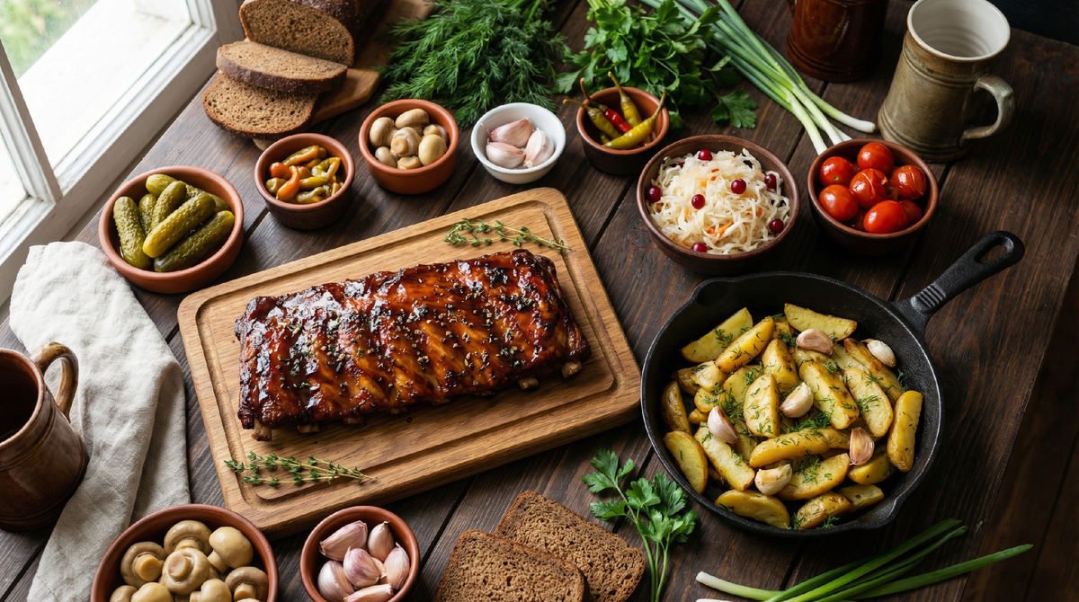 День защитника Отечества традиционно считается мужским праздником, когда представители сильной половины человечества получают поздравления, подарки и, конечно же, угощения. Каждая хозяйка старается в этот день накрыть стол так, чтобы порадовать своих мужчин чем-то особенным и вкусным. И если вы задумываетесь над тем, что приготовить к 23 февраля, то сочетание сочных рёбрышек барбекю, хрустящей жареной картошки и пикантных солений станет идеальным выбором для настоящего мужского застолья.