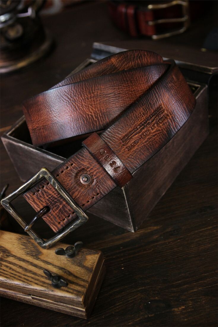 Не тот, что продаётся в переходе за восемьсот рублей и треснет через полгода. А настоящий, с латунной или медной пряжкой, прошитый вручную, с ровным краем, который обработан так, что хочется потрогать. Мастера делают ремни под размер, это важно, потому что стандартные размеры часто не подходят. Можно заказать с инициалами или короткой надписью на изнанке. Такой ремень носят десятилетиями.