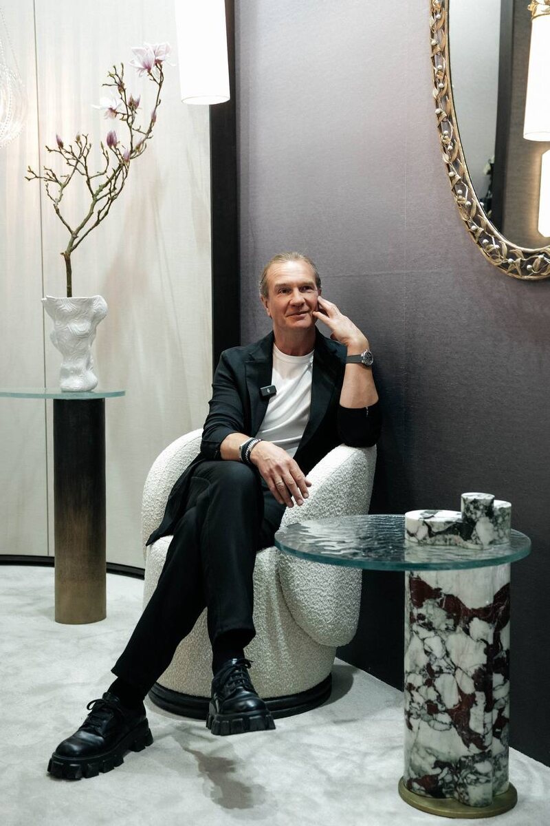 Вчера мы были на открытии ARTDOM. В этом году Олег Клодт выступает не только как амбассадор выставки, но и как участник — и для нас это всегда особое ощущение: видеть предметы, которые ещё недавно существовали в эскизах и обсуждениях, уже в пространстве выставки. Авторские объекты Олега представлены на стенде наших партнёров Vetvi: консоль, кофейный столик, торшер, зеркало, люстра, диван и кресла. Для нас это естественное продолжение архитектурной работы в масштабе предметного дизайна — когда идея, пропорция и материал переходят из пространства в объект и начинают жить своей жизнью. Олег также принял участие в лекции с Ириной Глик, где разговор шёл о трендах в интерьере — без поверхностных формулировок, скорее о том, что действительно остаётся со временем. Некоторые предметы он увидел в экспозиции впервые — и, как это часто бывает, сразу начал обсуждать детали и вносить правки в дальнейшее производство. Процесс никогда не останавливается, даже в день открытия. Нам всегда особенно пр