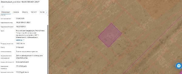 м. с кадастровым номером 16:28:180401:2827, с разрешенным использованием «Для индивидуального жилищного строительства», расположенный по адресу: РТ, Мензелинский муниципальный район, МО «г.Мензелинск», г.Мензелинск Канал: Госземля Республика Татарстан Область: Респ Татарстан Район: м.р-н Мензелинский Населенный пункт: г.п. город Мензелинск, г Мензелинск Локация: Смотреть на карте ВРИ: Для индивидуального жилищного строительства Кадастровый номер: 16:28:180401:2827 Кадастровая стоимость: - Вид сделки: Аренда Площадь: 1000 м² Начальная цена: 17421.00 руб. Дата завершения: 15.03.2026 Подробнее: ГИС ТОРГИ #госземля #земляотгосударства #земля #земельныйучасток #земельныеторги #торги #аукцион #арендаземли #аренда #республикататарстан