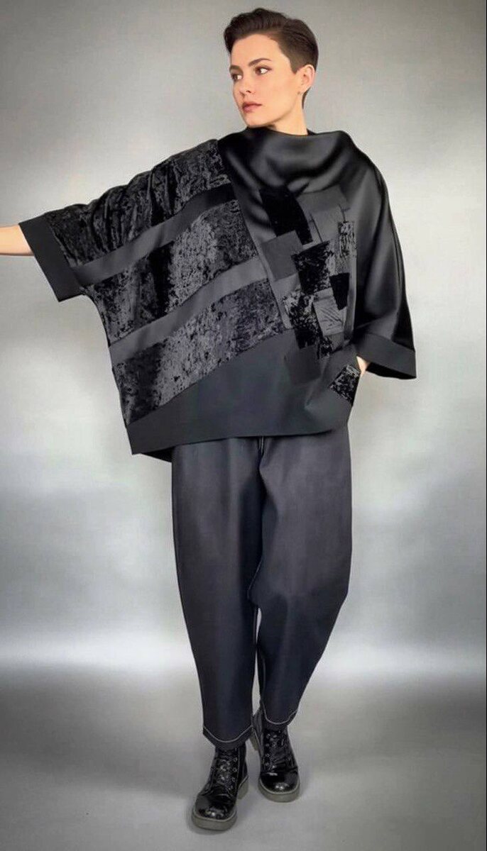 🙌 Чёрный свитшот – балахон с заплатами и брюки из итальянской джинсы Брюки на бёдра от 105 до 113 см 12 500 руб. Свитшот на обхват груди и бёдер до 130 см 11 500 руб. Купить или заказать другой размер 👉 @LeraSamaryanova или WhatsApp: +7(917)517-58-17. ⚠️ Важно: менеджеров или помощников у меня нет!