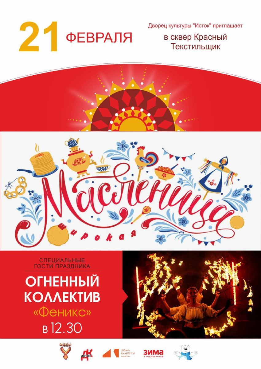 Вас ждёт атмосфера народного веселья, ароматные блины и яркие развлечения для детей и взрослых. 🔥Особая изюминка программы — захватывающее файер‑шоу от огненного коллектива «Феникс» в 12:00⏰ Завораживающие трюки, игра пламени и море эмоций подарят незабываемые впечатления и создадут по‑настоящему праздничное настроение! Приходите с семьёй и друзьями — будем вместе встречать весну! Ждём вас! Будет жарко — в прямом и переносном смысле! ✨🥞🔥 📆 21.02.2026 🕛 11:00 🏢 ДК культуры Исток 📍Сквер Красный текстильщик 💰 Вход свободный❗️ ⭐Поддержать канал голосом 💰 Канал Вакансии Серпухова ✅ Мероприятия Серпухов https://dzen.ru/id/66f01c6eb4c6fe60c9ca1608 http://vk.com/serpukhov_events http://dzen.ru/serpukhov_events