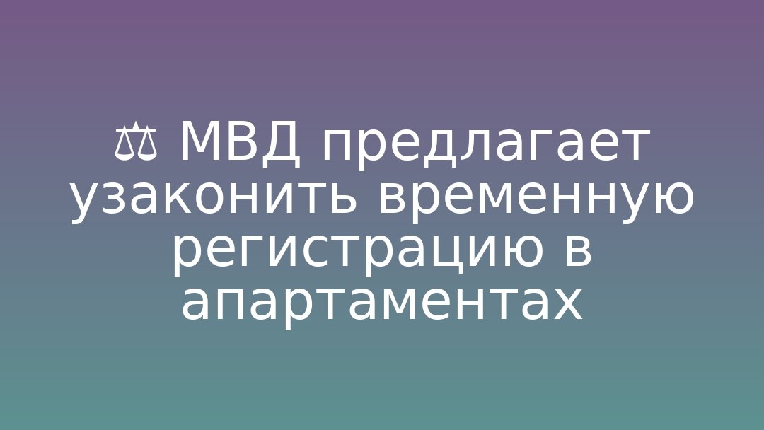 МВД России предложило закрепить в законе право на временную регистрацию в апартаментах при их фактическом использовании для проживания. Инициатива готовится к внесению в законодательство (ТАСС).