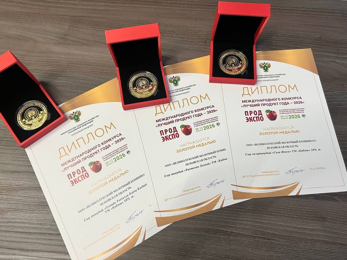 » 🏆 Сыры «Кабош» завоевали три золотые медали на конкурсе «Лучший продукт года – 2026» в рамках выставки «ПРОДЭКСПО – 2026» в Москве. 🎯 Победители: Casa Brava (выдержка 24 месяца), Grande Fortezza (30 месяцев) и Parmesan Лёгкий 32% (12 месяцев). 📌 Конкурс проводился по строгим международным стандартам с слепой дегустацией, что подтверждает высокое качество продукции. ✨ В компании отметили, что награды отражают успех их философии, основанной на длительном созревании и тщательном контроле производства. 👉ВЛуки.ру