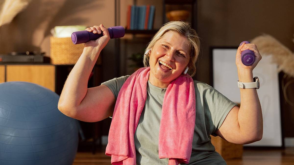 Силовые тренировки (даже с маленькими гантелями дома) помогают сохранить мышцы. А чем больше мышц, тем больше калорий тратится в покое.