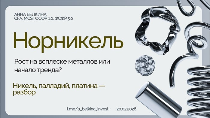 #Gold #материалы #Металлурги #PALLADIUM #XPTUSD #NICKEL #GMKN Металлы → российский рынок: следующий уровень реакции Ранее рассмотрели: https://dzen.ru/media/id/65b8789ff12bfe0796a26941/gold-gldrub-usdrub-6985889ffaea59566f9026db https://dzen.ru/media/id/65b8789ff12bfe0796a26941/gold-gldrub-usdrub-698d7035faea59566f919046 https://dzen.ru/media/id/65b8789ff12bfe0796a26941/gold-gldrub-usdrub-6984d450faea59566f900ff0 https://dzen.ru/media/id/65b8789ff12bfe0796a26941/video-697f9680faea59566f8f11f3 https://dzen.ru/media/id/65b8789ff12bfe0796a26941/video-697bb725faea59566f8e7a5f После золотодобытчиков логично перейти к компаниям, которые чувствительны не к защитному золоту, а к промышленным металлам. Сегодня в фокусе — #GMKN (Норникель). Почему это следующий уровень? Если золото — это: ✔️защитный актив, ✔️ставка на риски и валюту, то палладий, платина и никель — это уже: ✔️промышленный спрос, ✔️автопром, ✔️глобальный цикл. 🔹 Норникель — чем отличается от золотодобытчиков ✔️Не один