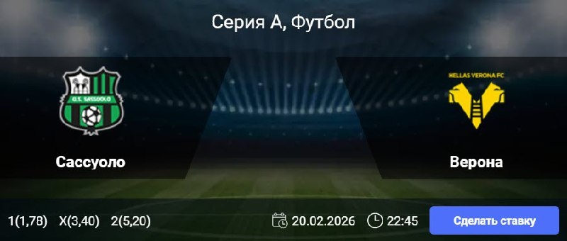 Сассуоло - Верона: матч Серии А 26-й тур чемпионата Италии (20/02/26/22:45