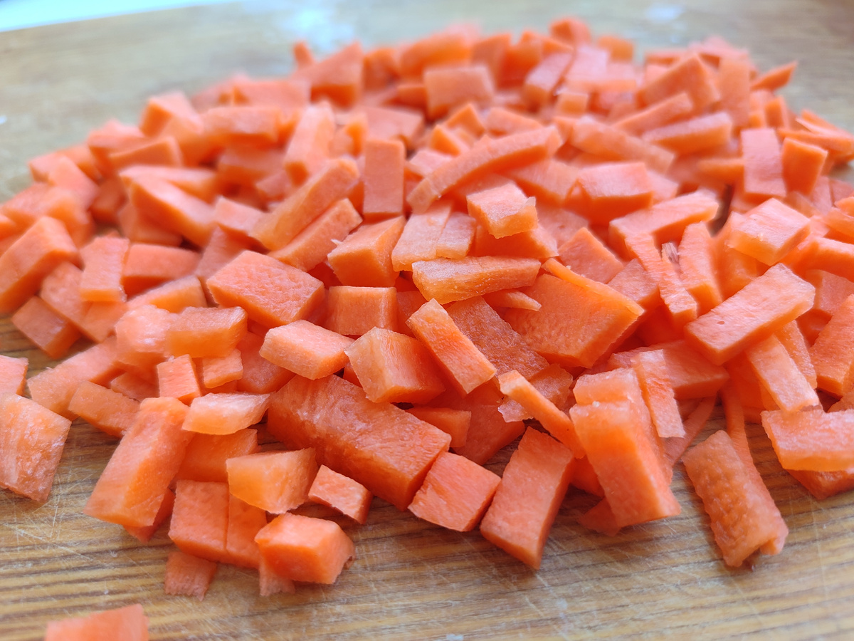 Параллельно разогреваю масло в сковороде (кастрюля, сотейник и проч.), и отправляю туда морковку. Не зажариваю сильно, ведь, как и многим из вас, мне нельзя жареное, да и вообще, мне важно сохранить полезность овощей.