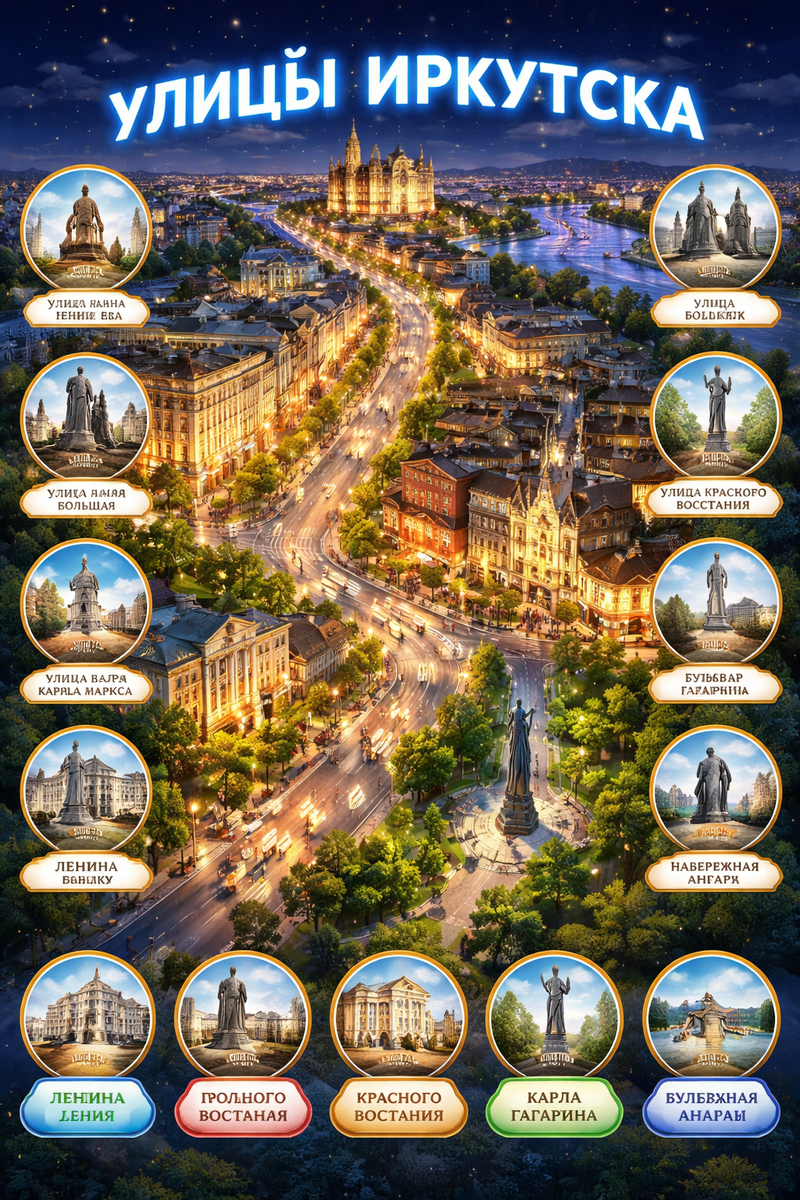 Я стоял на углу Карла Маркса и Ленина вечером, когда зажглись фонари. Мимо шли студенты, где-то играла музыка из открытого окна, а старые купеческие особняки смотрели на всё это с каменным спокойствием. Иркутск — удивительный город: он не старается быть современным любой ценой. Он просто живёт в своих ритмах, в своих названиях, в своих запахах.