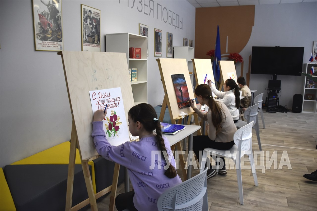 Школьники узнали о земляках – участниках СВО и нарисовали поздравительные открытки. На экскурсию «Гордимся славою героев» пригласил местных гимназистов Марковский исторический музей. Его директор Виктория Бабенко рассказала подросткам о бойцах специальной военной операции, родившихся в округе и вставших на защиту Родины. Среди них – Герой ЛНР Александр Мирошник, ценой собственной жизни спасший товарищей. Страница за страницей разворачивался перед школьниками доблестный путь смелых земляков. Истории современных бойцов будто переплетались с отвагой участников Великой Отечественной войны, подвиги которых отражены в фотографиях и экспонатах. А в Детском центре Музея Победы царило художественное творчество. Воспитанники Марковской детской школы искусств рисовали большие открытки, предназначенные бойцам СВО. На их полотнах появлялись танки и самолеты, расцветали яркие цветы и сияли красные звезды. Методист Детского центра Анна Проценко рассказала ребятам о происхождении знаменательной даты и