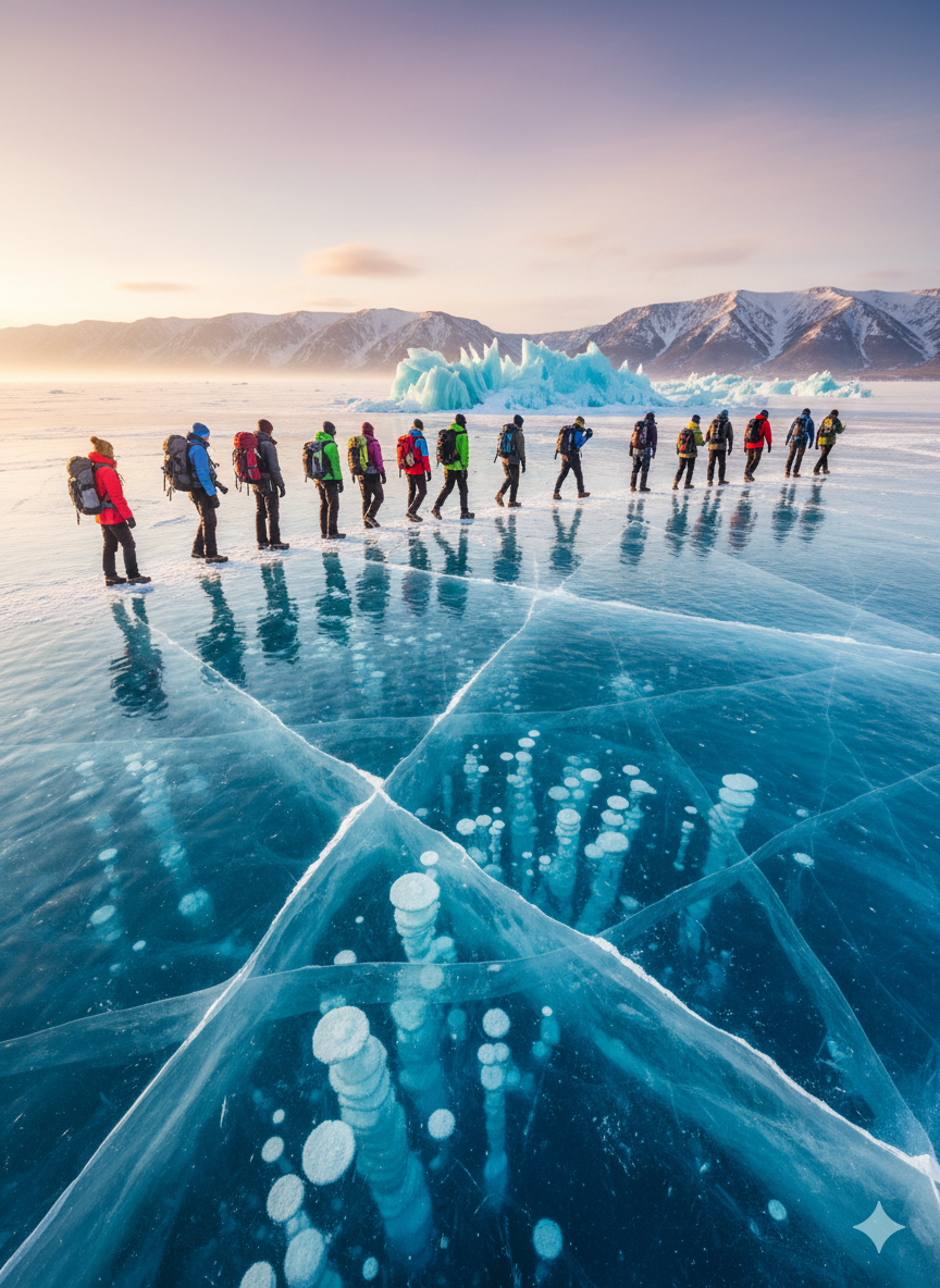 - Безопасно ли ходить по льду Байкала? В феврале–марте толщина льда достигает полутора метров, что делает его безопасным для пешеходов и даже автомобилей. Главное — следить за прогнозом погоды и не ходить в одиночку в малолюдных местах.