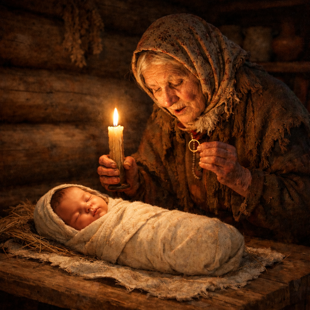 Очень часто в деревнях, если ребенок умирал, бабушки или матери давали обет: «Если выживет — отдам самое дорогое». Но здесь бабушка отдала не вещь, а символ своей супружеской жизни. Возможно, она мысленно (или вслух) обратилась к силам (Богу, Предкам, Матери Сырой Земле) со словами: «Возьмите мое семейное счастье, мою любовь (символизируемую кольцом) взамен на жизнь этого младенца». Кольцо оставляли в укромном месте (под печкой, в дупле, зарывали под порогом) — это и была плата.
