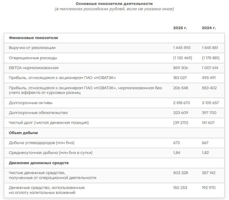 Отчет МСФО за 2025 г. 📉Чистая прибыль за год = 183 млрд руб или 60 руб на акцию (-63% к прошлому году). 📉Годовая выручка - минус 6%. 📉Нормализованная EBITDA - минус 15%. 🔍Если смотреть на показатели в "лоб", то результат провальный: за второе полугодие зафиксирован первый убыток с 2015 года. 💎Согласно дивидендной политике Новатэк направляет акционерам 50% прибыли дважды в год. Формально финальной выплаты быть не должно. Однако есть нюанс: компания может скорректировать размер прибыли для расчета дивиденда на разовые прибыли (убытки). В пресс-релизе указан эффект от разовых неденежных списаний - 301 млрд руб. Следовательно, финальный дивиденд возможен. 💸За первое полугодие акционеры получили 35,5 руб на акцию. Красивый график выплат Новатэк постарается не испортить. 🔗Ключевые выводы - в статье на Sponsr 👈 #инвестПрактика #фундаментальныйанализ #Новатэк #NVTK