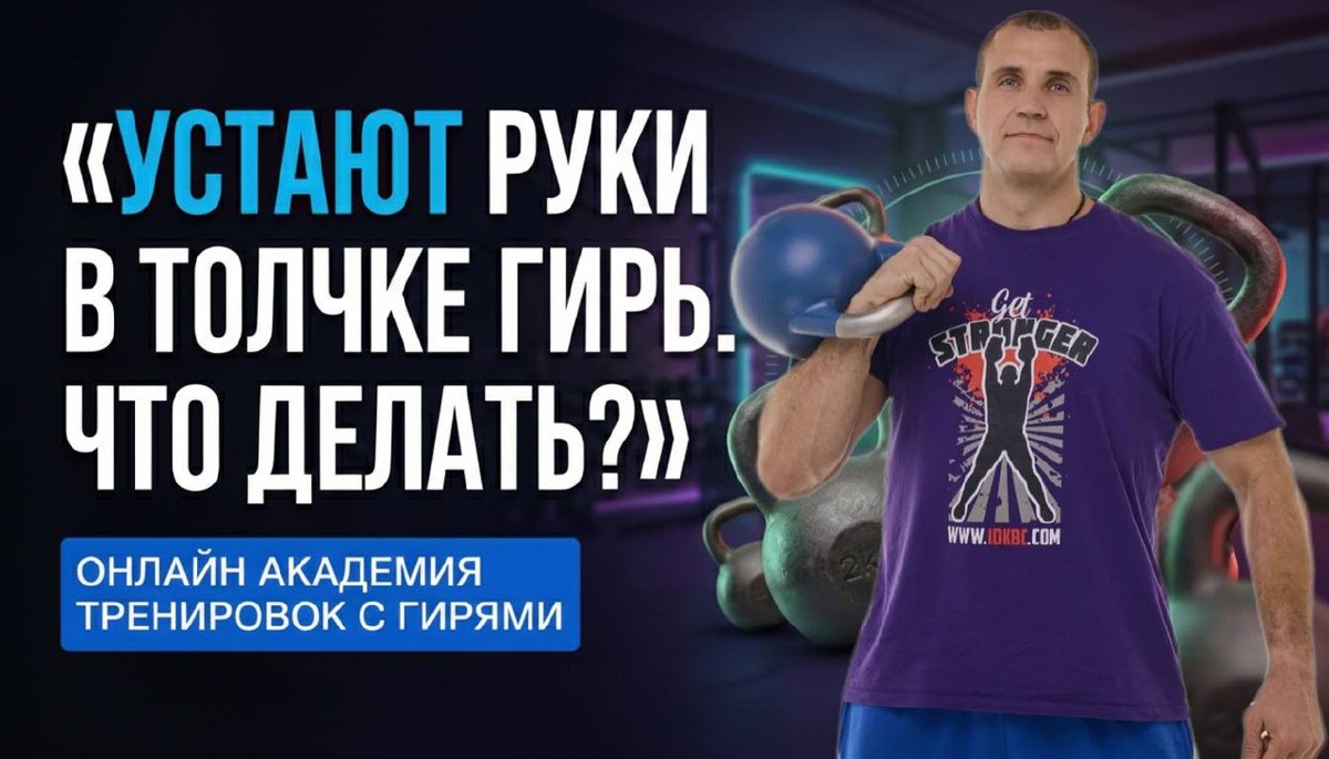 Что делать? 🖊Многие сталкиваются с ситуацией: ноги ещё работают, дыхание держится, а руки забиваются уже к середине подхода. ✅Чаще всего причина не в слабых трицепсах, а в нюансах фиксации наверху. Разберёмся по порядку. Когда после выталкивания гири прыгают в верхней точке, руки вынуждены каждый раз гасить лишнее движение. Это создаёт дополнительную нагрузку на плечи, локти и позвоночник. За 8–10 минут таких микроколебаний накапливается серьёзная усталость. Откуда берётся это подпрыгивание? Во многих случаях спортсмен выпрямляется слишком резко вверх. Есть импульс ногами, потом идёт мощное вставание, и гири продолжают движение по инерции. Тело не является жёсткой конструкцией: плечи, локти, позвоночник имеют степени свободы, и гири начинают играть. ❎В результате руки работают больше, чем должны. Что можно изменить❓ 1️⃣Обратить внимание на способ выпрямления. Если вставать строго вверх с выталкиванием таза вперёд, вертикальное ускорение усиливается, и гири подскакивают. Более