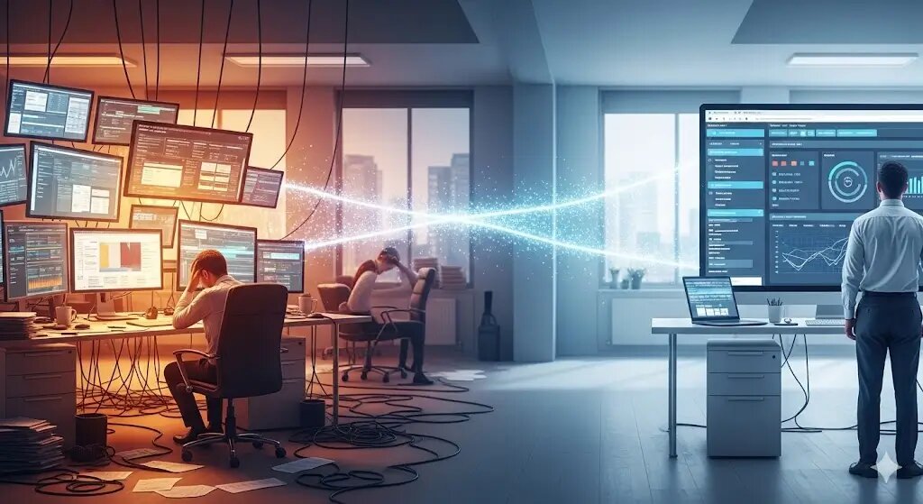 Но деньги были лишь вершиной айсберга. Главной проблемой стала когнитивная нагрузка на команду и потеря данных. Менеджер принимал звонок от клиента в одной системе, копировал данные в другую, ставил задачу инженеру в третьей, а счет выставлял в четвертой. Попытки связать всё это через API-коннекторы приводили к созданию хрупких «костылей». Бизнесу требовалась фундаментальная смена парадигмы и переход на единую платформу для управления бизнесом.