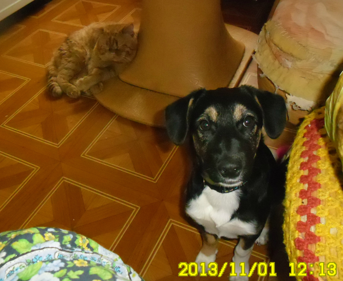 Сколько радости, приятных моментов нам доставляют наши пушистые питомцы. У нас в разное время жили коты, последние годы жила собачка Малька - простая дворняжка, а еще раньше пес Гоша - смесь черного терьера и ризеншнауцера - очень милый и смешной здоровяк. Сейчас никого нет. Последней ушла Маля, ей было не так уж много лет - 12 или 13, но увы, серьезные болезни... Сегодняшний пост - фоторепортаж я решила посвятить им, таким милым, любимым, которые столько лет жили с нами бок о бок и которых мы никогда не забудем. Вот так появилась у нас Малька - ее подарили Лерочке на день рождения, очень уж просила внучка. Это было в 2013 году, как видно на фото. И как вы думаете, на кого потом легло основное бремя ухода за собачкой? Правильно, на бабушку. А за Малькой около стола притулился Ёся (Иосиф), и справа, за Малькой же, видно, что стало с кухонным диванчиком благодаря ему же. Малька подросла, одно ухо у нее поднялось, а второе так и осталось висячим - видно хрящик был сломан. Посмотрите, ка