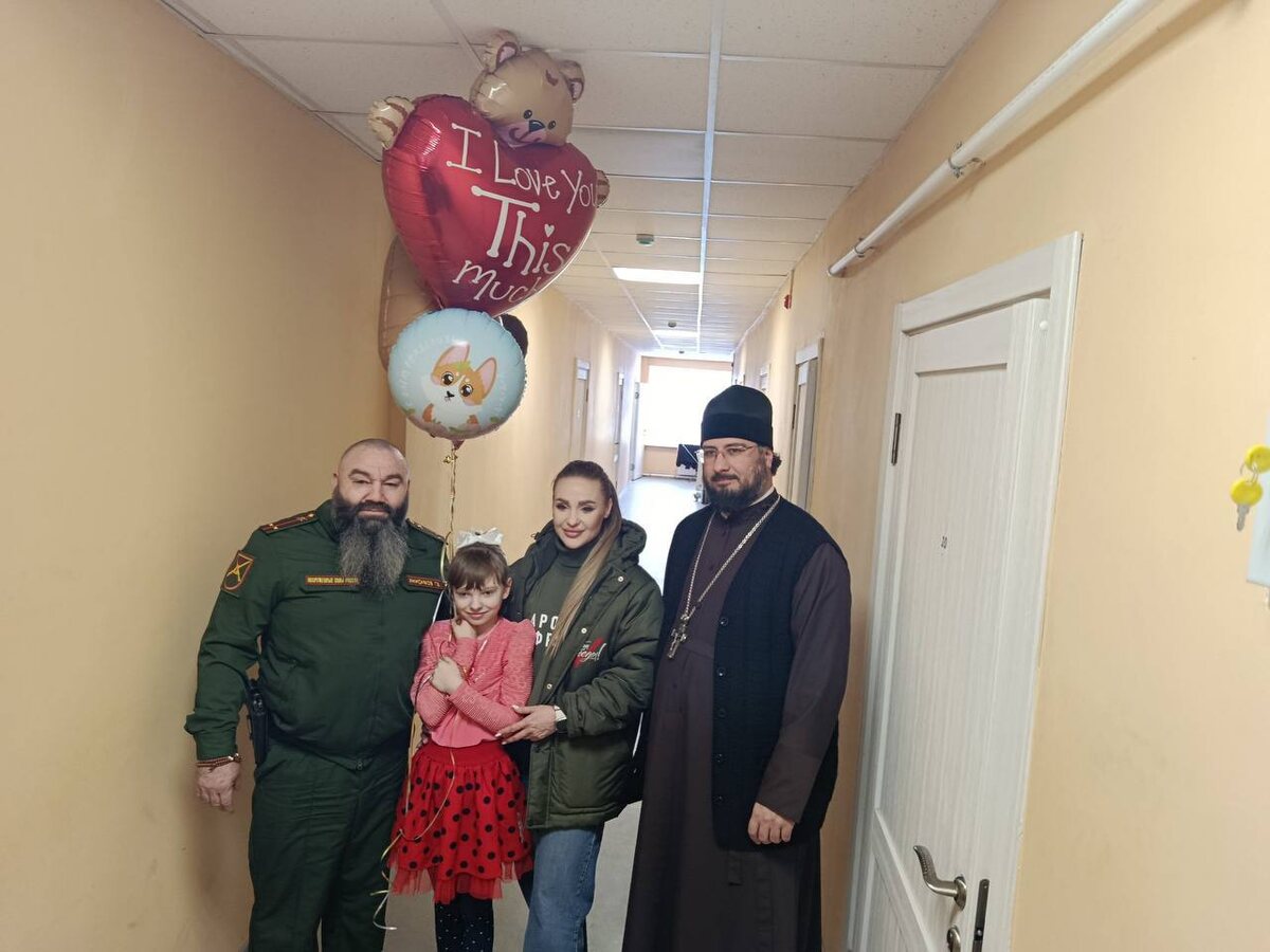 из г. Северска. Мы приехали поздравить девочку Елену с днём рождения - в этот день ей исполнилось 9 лет, в этом возрасте она уже пережила очень сложные испытания войной, но осталась веселой и жизнерадостной. От себя подарил ей нательный крестик, пожелав, чтоб она оставалась крепкой в вере и чтоб Бог всегда сохранял ее и дальше. Также познакомился с остальными постояльцами пункта временного размещения — у каждого своя судьба — но каждый из них не потерял надежду, и здесь, благодаря помощи Народного фронта, они не чувствуют себя одинокими. Особенно тронула История женщины, которую все называют ласково, — мама Оля. Она готовит на кухне и кормит всех, пытаясь поддержать каждого! Каждая такая встреча показывает, какой сильный внутренний стержень нашего народа-победителя, заставляет задуматься и вдохновляет на подвиги дальнейшего служения. Пусть милостивый Господь сохранит каждого из нас и дарует нам мирное небо! Архимандрит Иоанн (Сухина), наместник Вознесенского мужского монастыря Луг