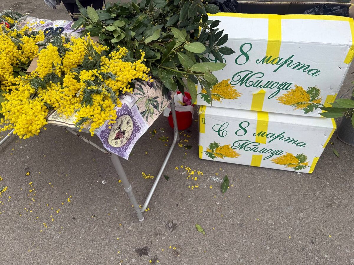 Появились точки с цветами на Центральном рынке. Пока в продаже только мимоза. Стоимость небольшого букета (3 веточки) -300 рублей. Посмотрим, как ценник взлетит к международному женскому дню.