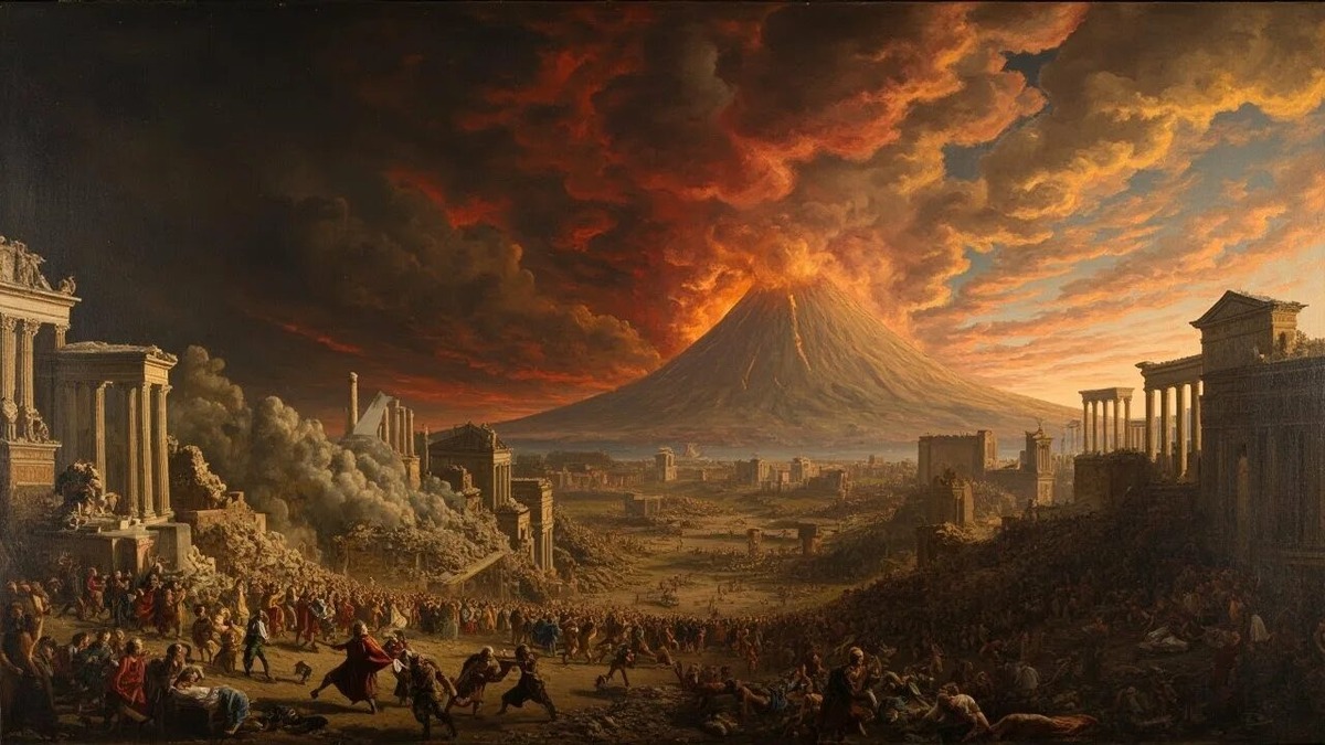 Одна из самых знаменитых катастроф древности, уничтожившая процветающие римские города Помпеи, Геркуланум и Стабии. 24 августа произошло пробуждение вулкана Везувий, которое его соседи считали обычной горой. Извержение сопровождалось выбросами огромного количества пепла, газов и пирокластических потоков — раскаленных лавин из камней и газа температурой до 300°C, движущихся с огромной скоростью .