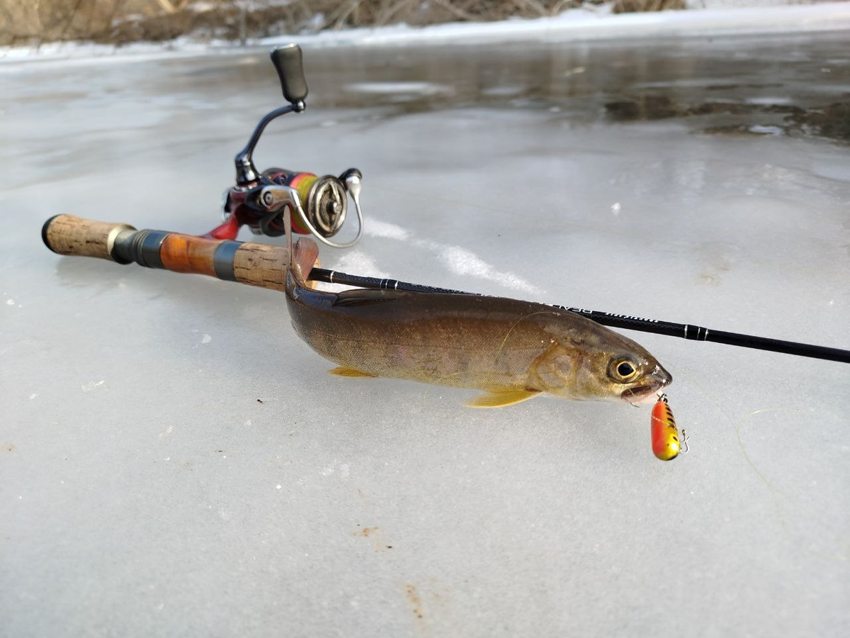 Из-за очень низкого уровня воды, течение практически отсутствует. Точки вскрываются медленно. Пеструха, обычно, неплохо разбавляет такие рыбалки. Но, её на этом участке сейчас практически нет. Несмотря на такие сложные условия, ленок уже начал двигаться наверх. Ему потребуется немало усилий, чтобы двигаться при такой засухе.