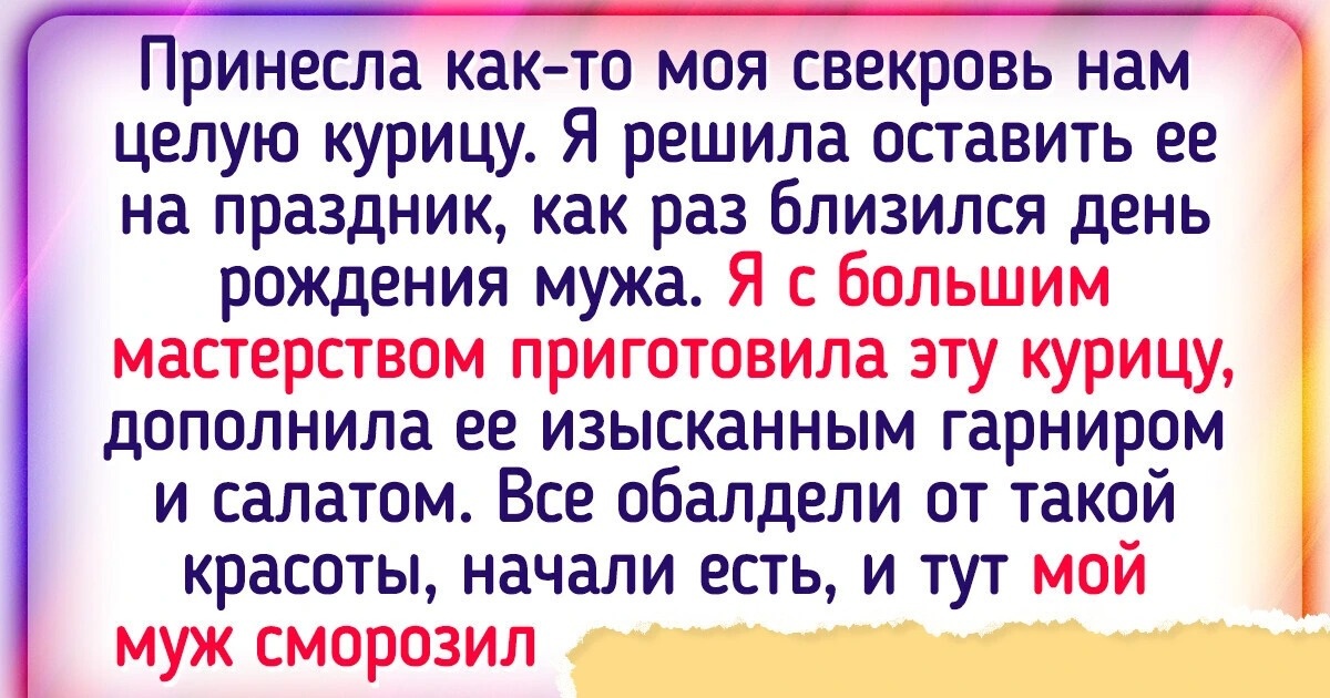 Комплименты — дело такое, одно неаккуратно вставленное слово, и похвала становится похожа на насмешку, подкол или издевательство. Герои нашей статьи попали именно в такие ситуации, но благо большинство отнеслись к этому с юмором и теперь эти истории могут вместо анекдотов рассказывать. Принесла как-то моя свекровь нам целую курицу. Я решила оставить ее на праздник, как раз близился день рождения мужа. Я с большим мастерством приготовила эту курицу, дополнила ее изысканным гарниром и салатом. Все обалдели от такой красоты, начали есть, и тут мой муж сморозил глупейший комплимент: «Какую же вкусную курицу принесла мама!» Я недавно отличилась. Хожу к мастеру на стрижку. Она делает не то, что я хочу, но в целом приемлемо. Другие стригут не так, да еще и плохо. Мастер знает, что я не очень довольна и расстраивается по этому поводу. Я решила ее приободрить, и не придумала ничего лучше, чем сказать, что у нее получается хотя бы не ужасно. Она сказала, что так ее еще не хвалили. © Хильдур / AD
