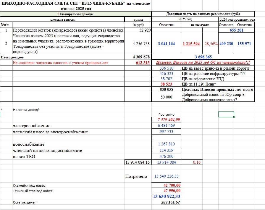 Ревизионная комиссия отдельно указывает на недопустимость направления поступающих взносов на оплату электроэнергии при наличии просрочек
