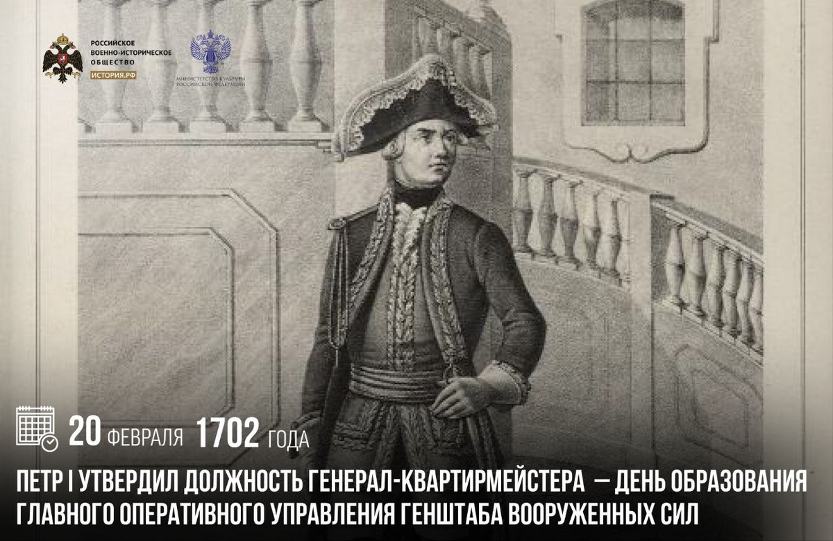 20 февраля 1702 года Петр I утвердил должность генерал-квартирмейстера — День образования Главного оперативного управления Генштаба Вооруженных Сил