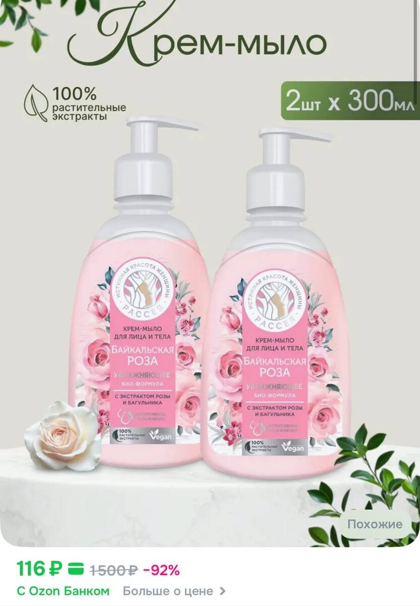 😀😀😀РАССЕЯ Жидкое мыло-крем для рук, подарочный набор Байкальская роза, 2 шт