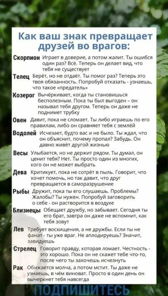 Вот забавный и немного грустный взгляд на то, как каждый знак зодиака (не специально, конечно) превращает друзей во врагов: