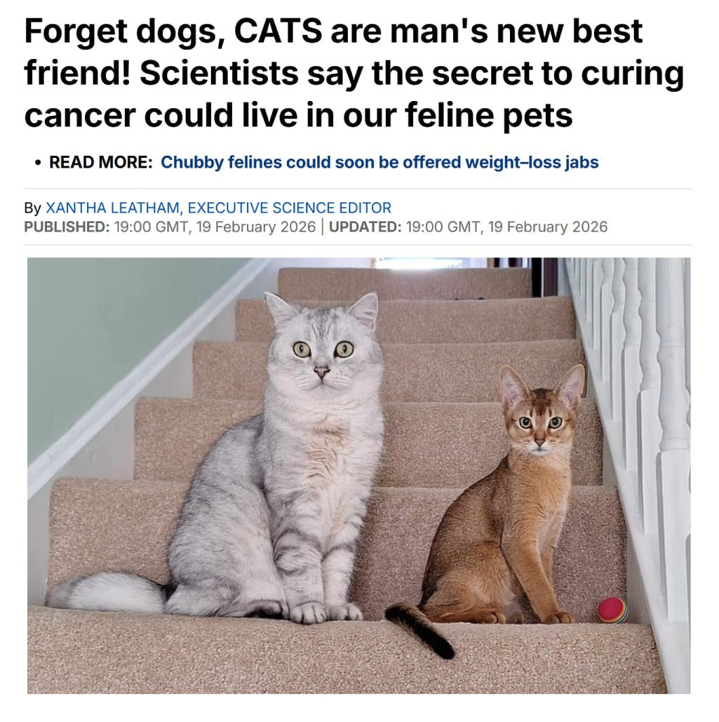 Это объясняется просто: коты живут в тех же домах, дышат тем же воздухом и едят похожую пищу, становясь буквально зеркалом нашего здоровья. Раньше опыты проводили на мышах, чей метаболизм сильно отличается от нашего, но кошки оказались гораздо более точной биологической моделью. Так что изучение кошачьего рака поможет быстрее тестировать новые методы терапии, которые спасут жизни и людям, и их четвероногим друзьям. Фактически мы получаем общую стратегию борьбы с болезнью для обоих видов. Котики, выручайте 😻 CtrlAltDelights- подписаться