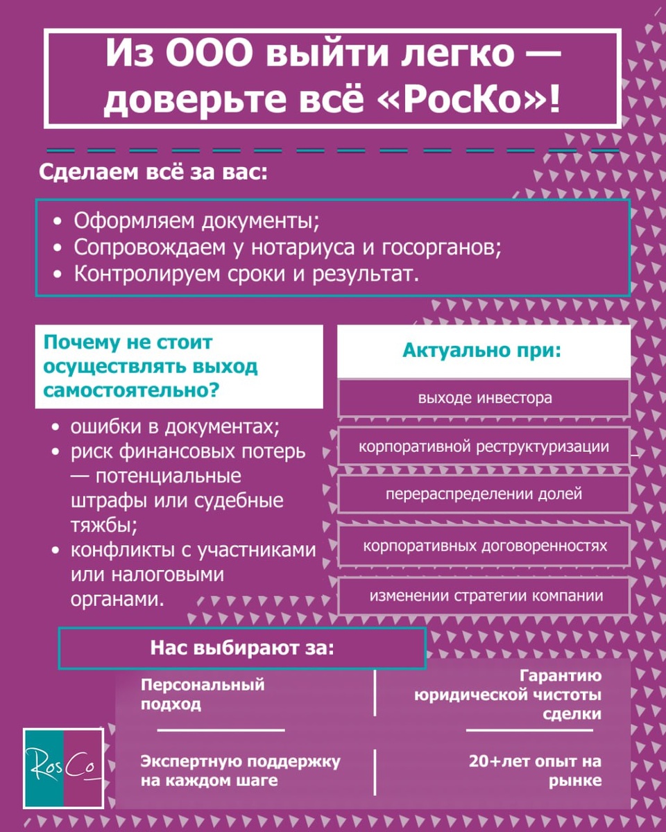 💼 Из ООО выйти легко — доверьте всё «РосКо»! #услуги