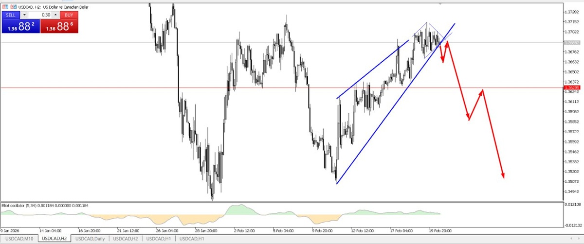 Тип сделки: продажа Сценарий Рассматривается сценарий снижения инструмента. Максимум текущего восходящего движения был сформирован в четверг, что может указывать на его завершение На таймфрейме H2 формируется медвежий клин, что усиливает вероятность нисходящего импульса. Дополнительно в зоне вершины восходящего движения просматривается разворотная модель «алмаз», подтверждающая возможный переход к снижению. 🎯 Цели по движению Цель 1: 1.3629 Цель 2: 1.3510 Цель 3: дальнейшее сопровождение позиции по тренду ❌ Отмена сценария При закреплении цены выше уровня 1.3716 сценарий продаж теряет актуальность. P.S. Клин и алмаз еще не получили подтверждение