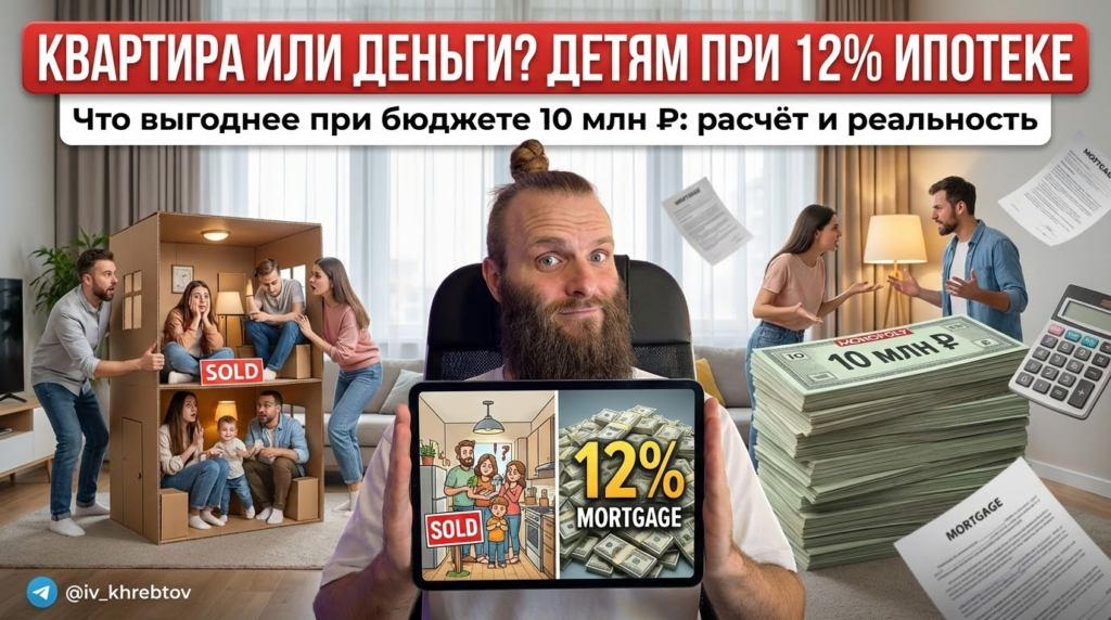 Я Иван, мне 34. Я частный инвестор и уже на ранней пенсии (FIRE). И сегодня по-человечески разберём: купить квартиру детям или оставить наследство деньгами — что выгоднее при бюджете 10 млн ₽ и ипотеке около 12%.