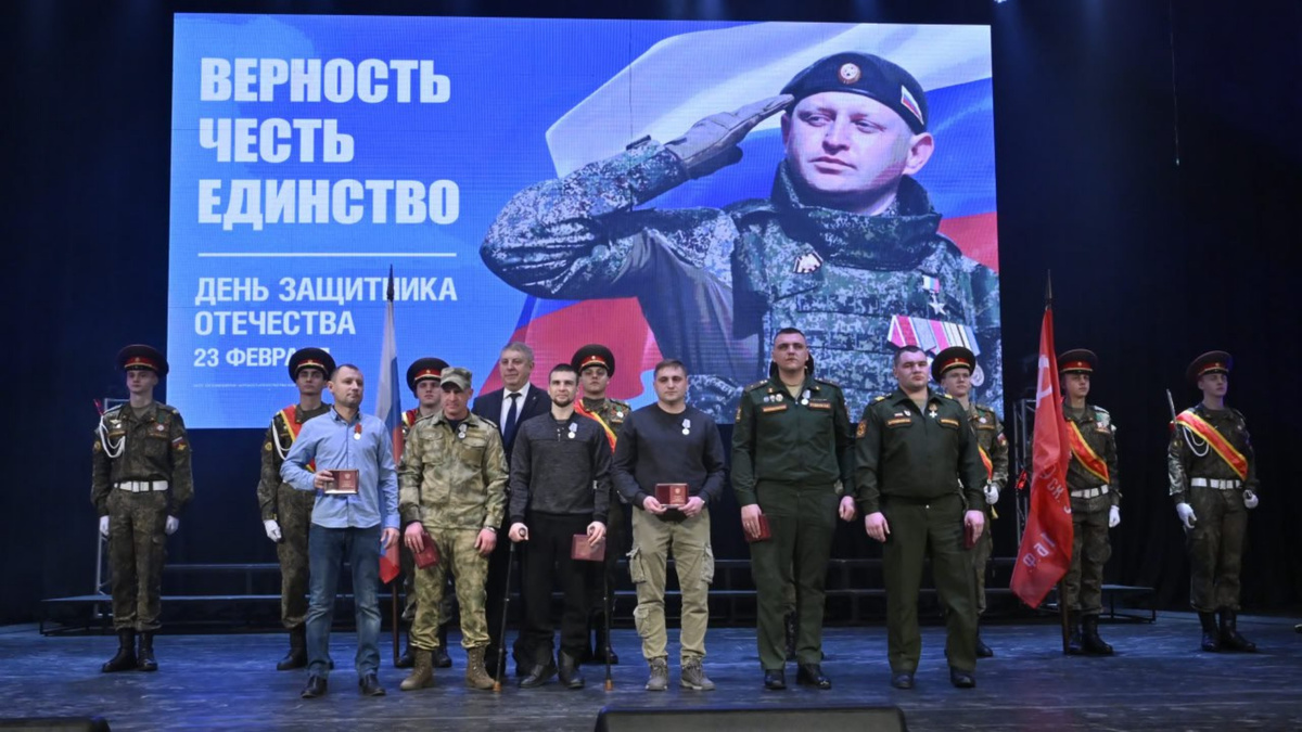 В концертном зале Брянской областной филармонии прошло торжественное мероприятие, посвященное предстоящему Дню защитника Отчества. Руководители региона вручили высокие награды разных уровней участникам специальной военной операции. Брянские герои были удостоены ордена Святого Георгия IV степени и медалей "За отвагу" и Жукова. Также не оставили без внимания отцов бойцов, проявивших мужество, отвагу, самоотверженность и героизм при выполнении боевых заданий. Они получили медаль "Отец солдата". "Этот священный праздник напоминает о героической истории России и мощи русского воина-освободителя, убеждает в несокрушимости ВС РФ", - сказал губернатор Александр Богомаз. Завершилось мероприятие театрализованным представлением. Для гостей выступили лучшие творческие коллективы нашего города и региона. Фото: Правительства Брянской области