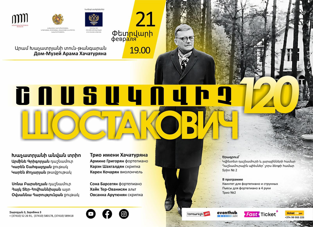 Дом-музей Арама Хачатуряна приглашает ценителей искусства 21 февраля в 19:00 на торжественный вечер, посвященный 120-летнему юбилею великого мастера — Дмитрия Шостаковича.