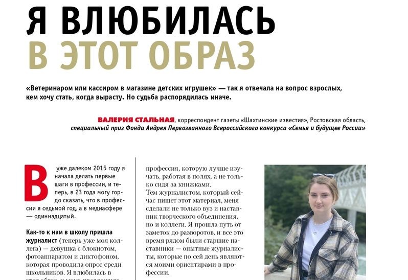 Открыть для себя профессию журналиста Валерии помогло юнкоровское движение творческого объединения «Свой голос» и детская газета «ШАНС». Мы, как юнкоры, сотрудничали с редакцией газеты «Шахтинские известия», которая в дальнейшем и стала моим местом работы, — рассказала журналист в материале журнала «Журналистика и медиарынок». Более 30 лет назад на страницах «Шахтинских известий» стали появляться материалы школьников — так началась история юнкоровского движения в Шахтах. Сегодня редакция выпускает детскую газету «ШАНС» (единственное детское печатное издание в Ростовской области), ведет сообщество ВКонтакте для школьников, публикует материалы юных журналистов на страницах «Шахтинских известий», проводит «Летнюю школу журналиста», привлекает школьников к реализации социально-значимых проектов, таких как «Добрая книга. Добрая газета», «Особые встречи», «Преображение», «День красоты» и других. Актив движения вместе с наставниками регулярно принимает участие в конкурсах, форумах и образоват