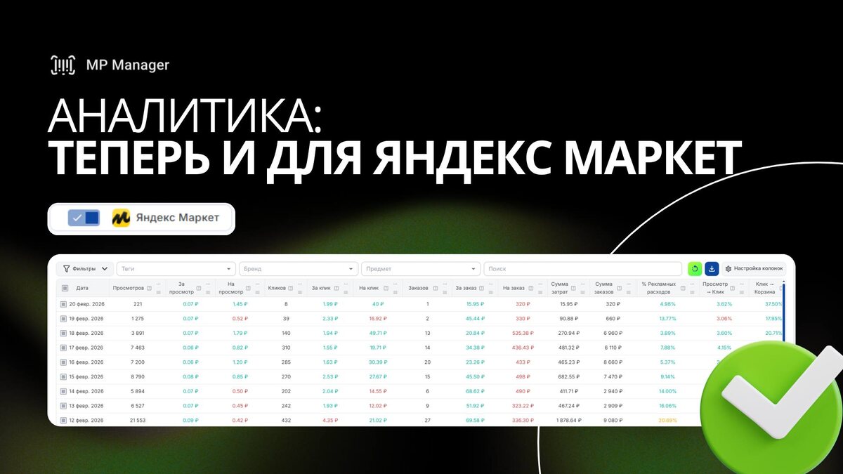 🚀 Хорошие новости! В MP Manager появилась полноценная аналитика для Яндекс Маркет