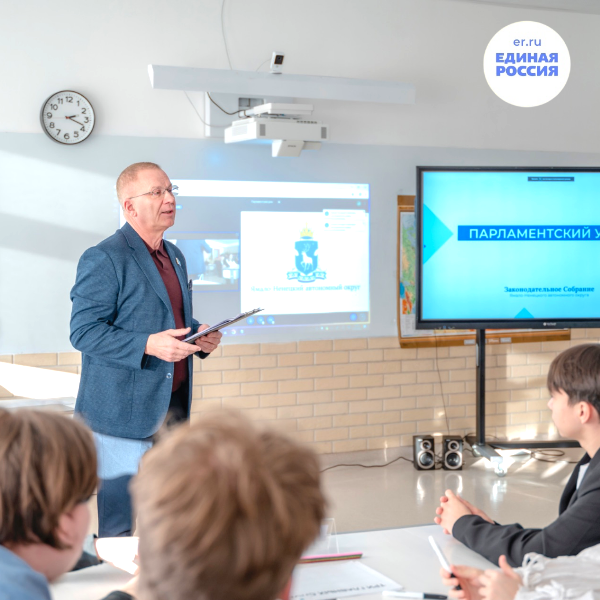 В преддверии годовщины первого Ямальского национального съезда Советов, положившего начало системе управления округом, депутат Законодательного Собрания округа Андрей Кугаевский встретился с учащимися Ямальской школы-интернат. Мероприятие прошло в рамках просветительского проекта «Открытый парламент» и было приурочено к 94-й годовщине исторического события, которое состоялось 27 февраля 1932 года