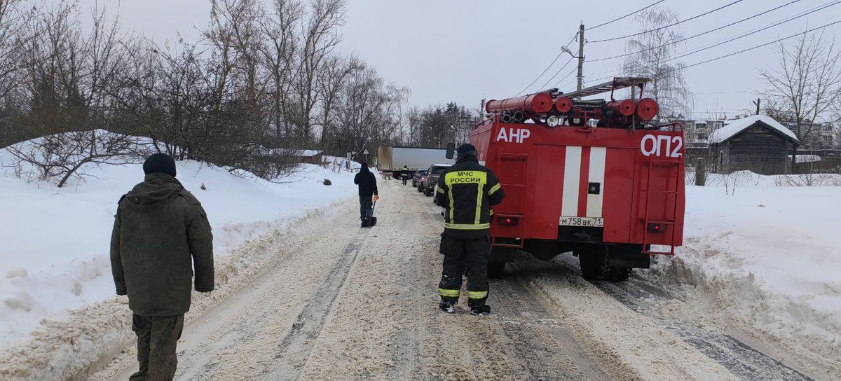 ⚠️ В Хомяково фура перекрыла дорогу на месте работают спасатели